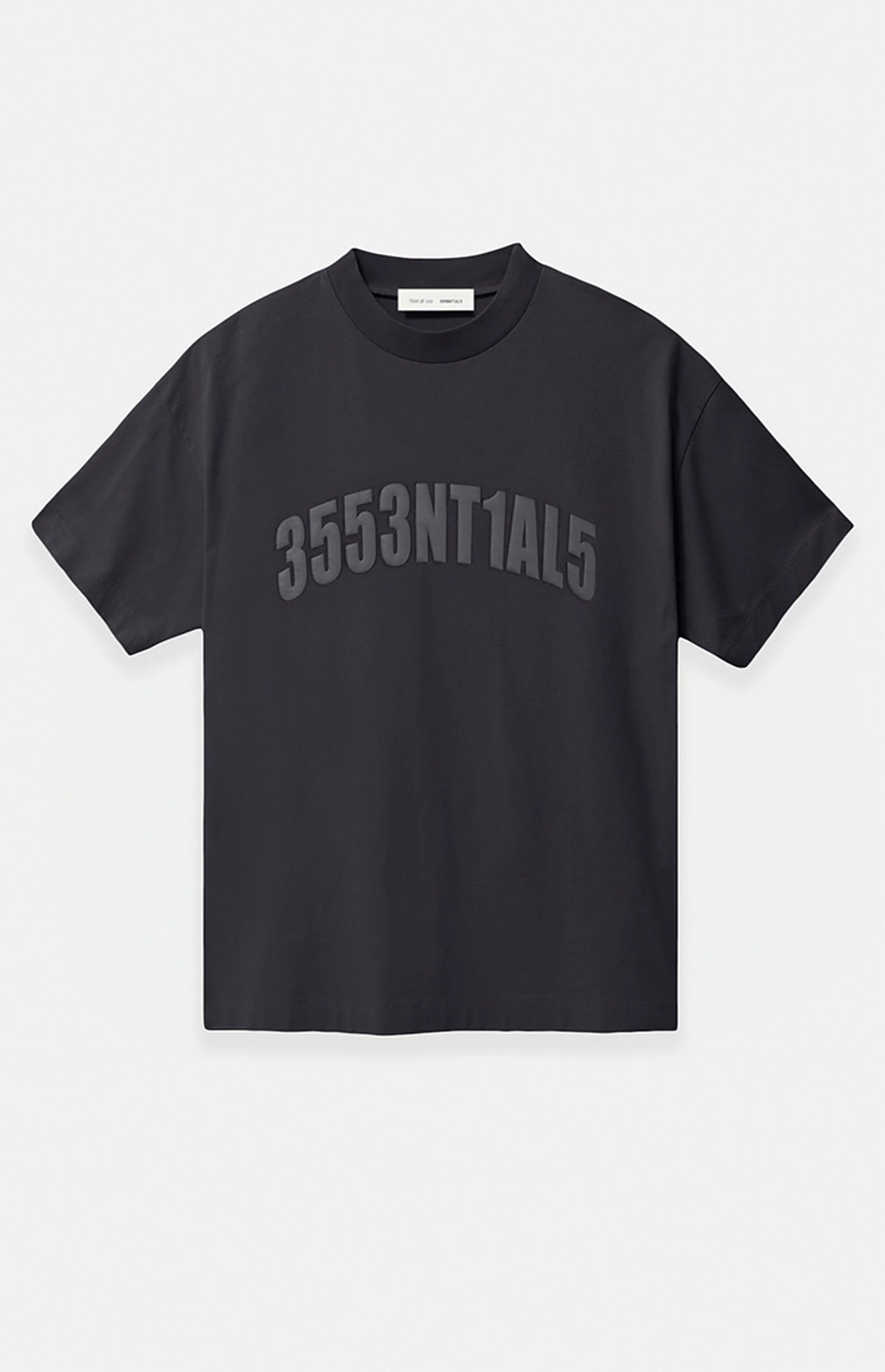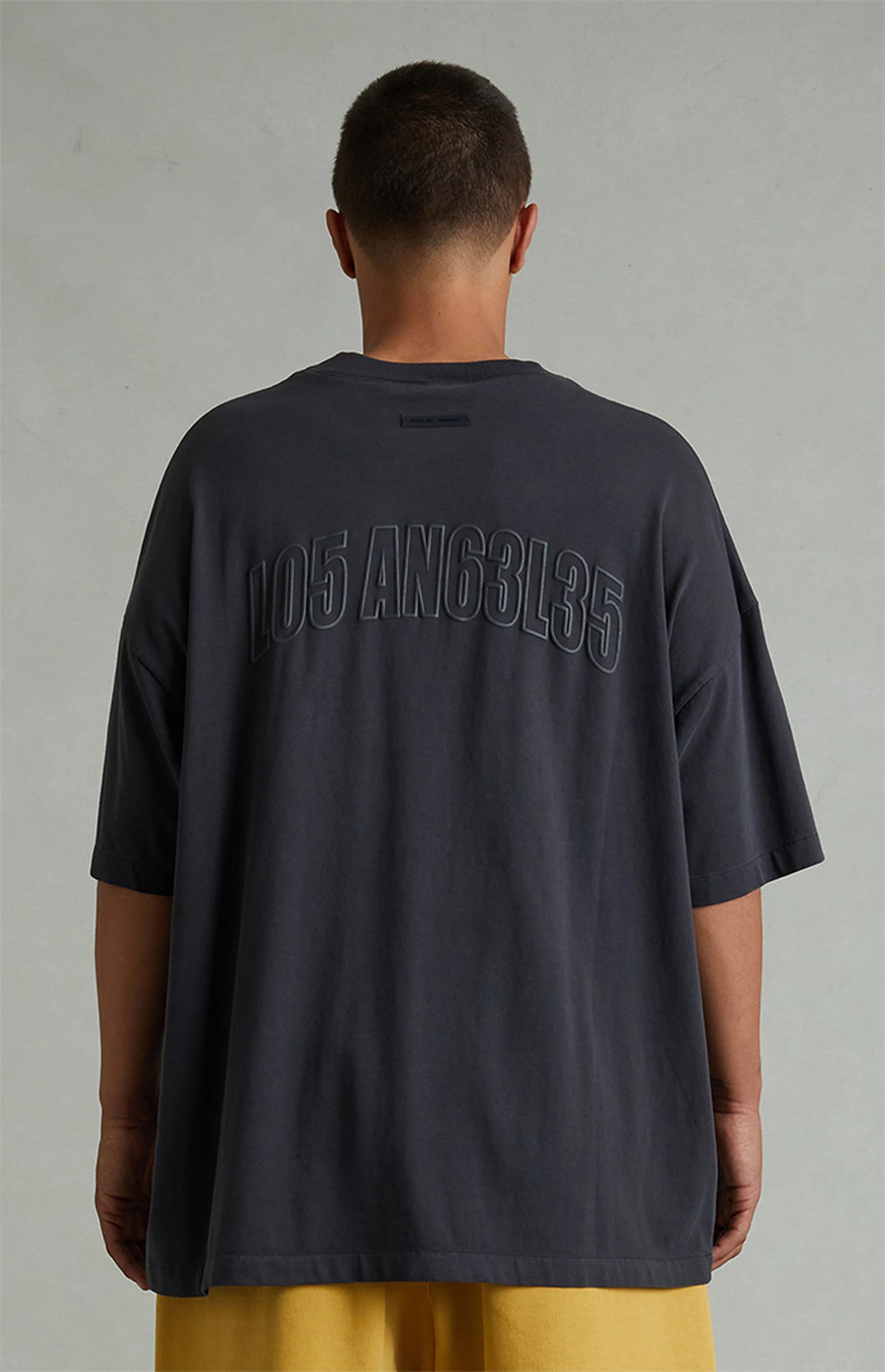The Vintage Black '90s Short Sleeve T-Shirt from Fear of God ESSENTIALS captures the brand’s signature blend of comfort and elevated streetwear design. Crafted with short sleeves and dropped shoulders, it features an oversized fit, a crew neckline, an ESSENTIALS number puff graphic at the front, an outlined city text puff graphic at the back, and a silicone rubberized brand logo label at the upper back.