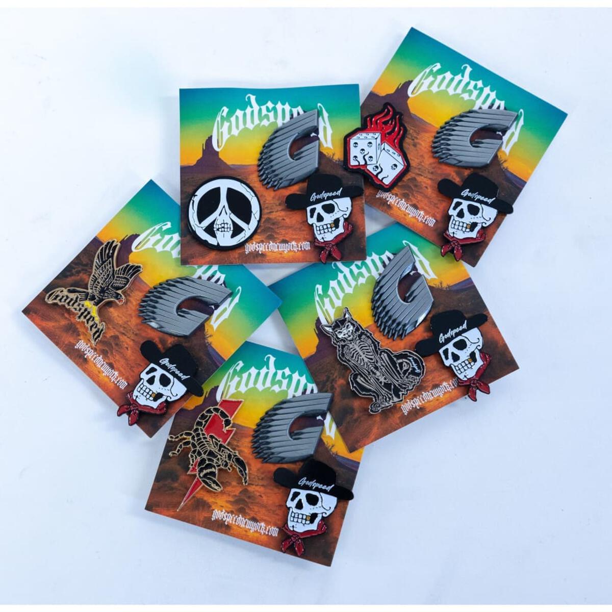 The Godspeed 4ever trucker hat is back in black blue and orange packaged in a limited edition box + a 3 piece pin set.