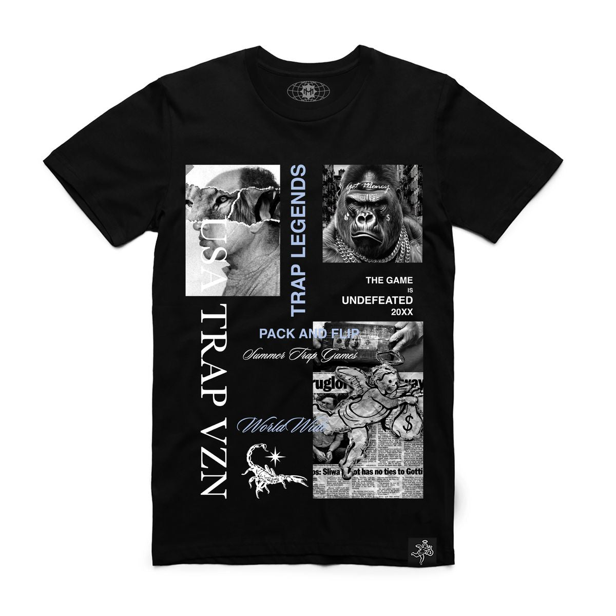 Elevate your style with one of our most popular pieces available. Made from 100% mid weight combed cotton, this tee offers a comfortable, regular fit. With a gold shimmer neckless neck tag and Hastamuerte woven hip label, these custom touches make this tee stand out from any other ones. Featuring a premium printed graphic one of our most iconic designs. Don't just wear a tee, make a statement today with this piece.
