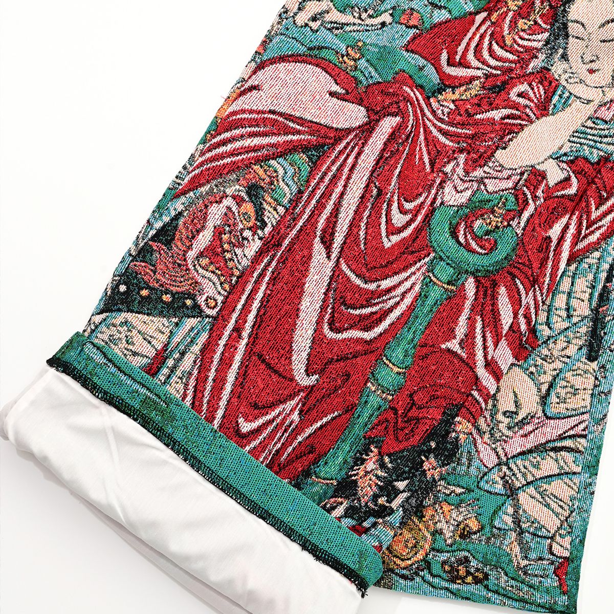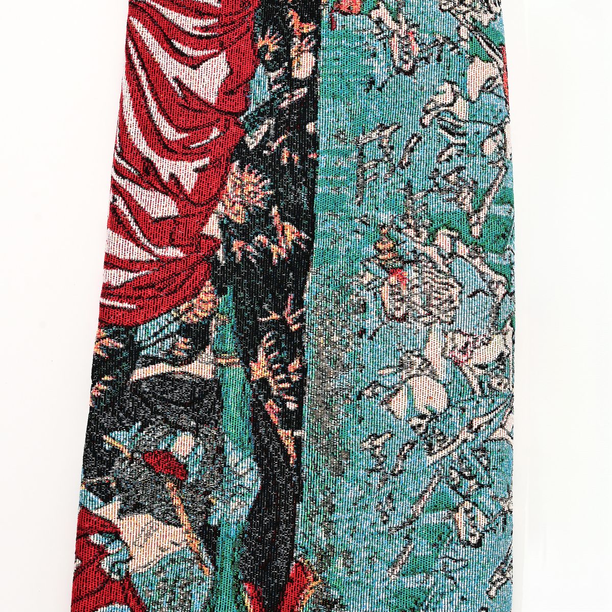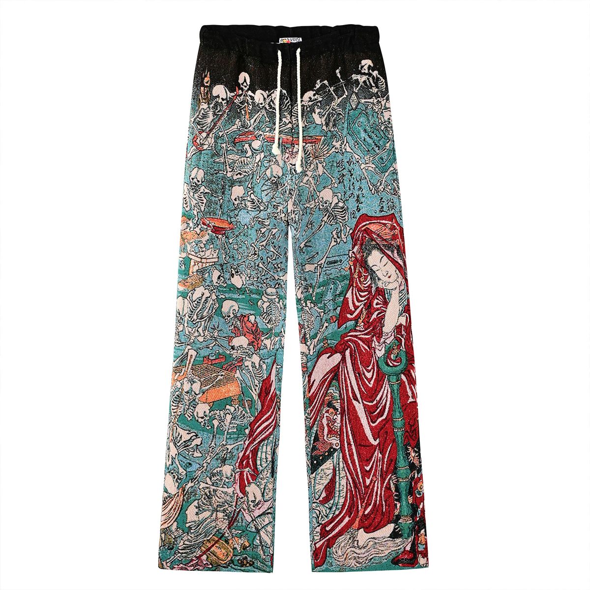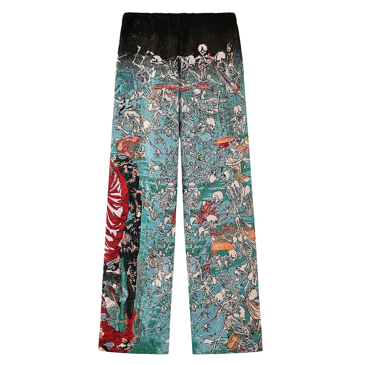 Design by Raf Reyes: Kawanabe Kyōsai's 'Jigoku Dayu' portrays a haunting scene with a seductive yet damned woman, surrounded by eerie dancing skeletons representing human vices