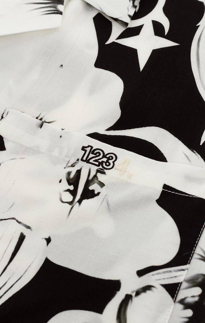 STANDARD FIT SHORT SLEEVE SHIRT WITH BUTTON PLACKET AND ALL OVER PRINT.