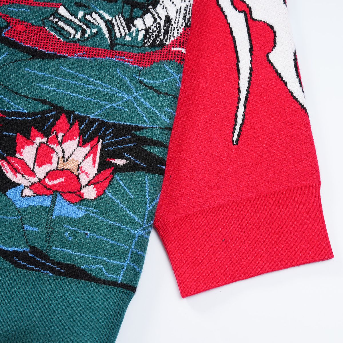 Design by Raf Reyes: a skeletal warrior wanders the crimson swamp of the underwVRld, blade drawn, spirit unbroken ?☠️ surrounded by lotus — symbols of purity born from mud — he fights long after death, tethered by honor ? @@@back: his final ᵥrest, sword grounded beside him, virtues engraved in fiber/fabric.