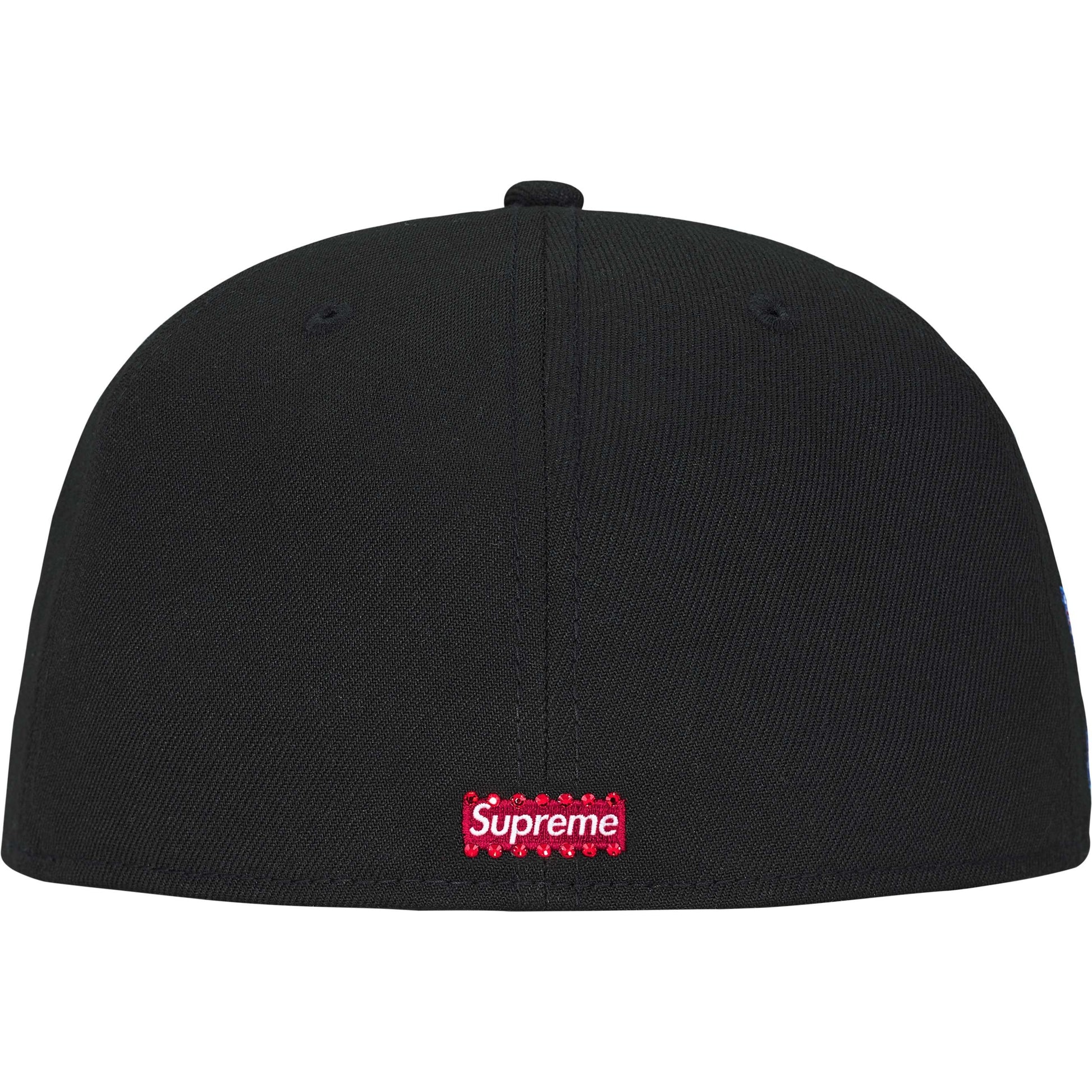 Poly New Era® 59FIFTY baseball hat with Swarovski® crystal logo appliqué and embroideries on front, sides and back.